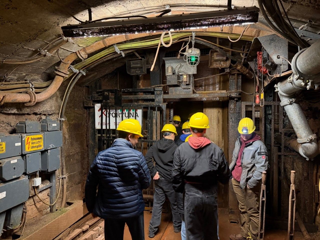 So erhielten die Schülerinnen und Schüler einen anschaulichen Einblick in die technischen Abläufe des Bergbaus. Gleichzeitig wurde deutlich, unter welchen Bedingungen gearbeitet wurde: Enge, Dunkelheit, hoher Geräuschpegel und körperlich anspruchsvolle Tätigkeiten prägten den Alltag der Bergleute. In diesem Zusammenhang wurde auch der bergmännische Begriff „Wetter“ erläutert. Gemeint ist damit die Luft unter Tage, insbesondere ihre Zirkulation und die Versorgung mit Frischluft, die für die Arbeit unverzichtbar ist.